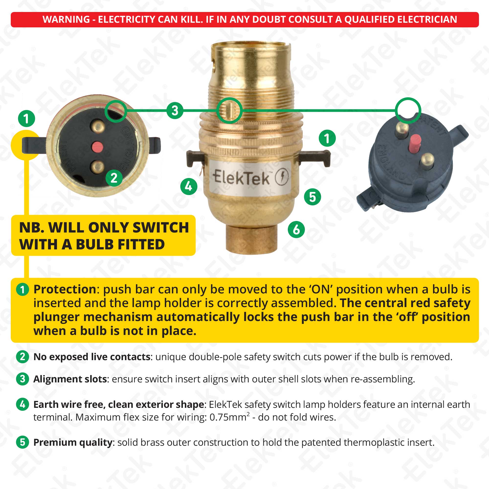 Elektek Premium Lamp Kit Chrome Safety Switch B22 Lamp Holder With Fle Buy It Better